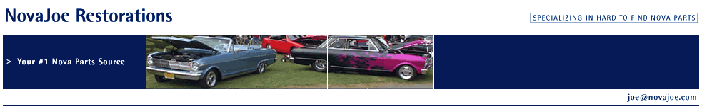 I specialize in hard to find Nova parts. I have many NOS and used parts available as well as speciality Nova parts. If you don't see the part you need on my eBay auction, email me. I can probably find it for you.